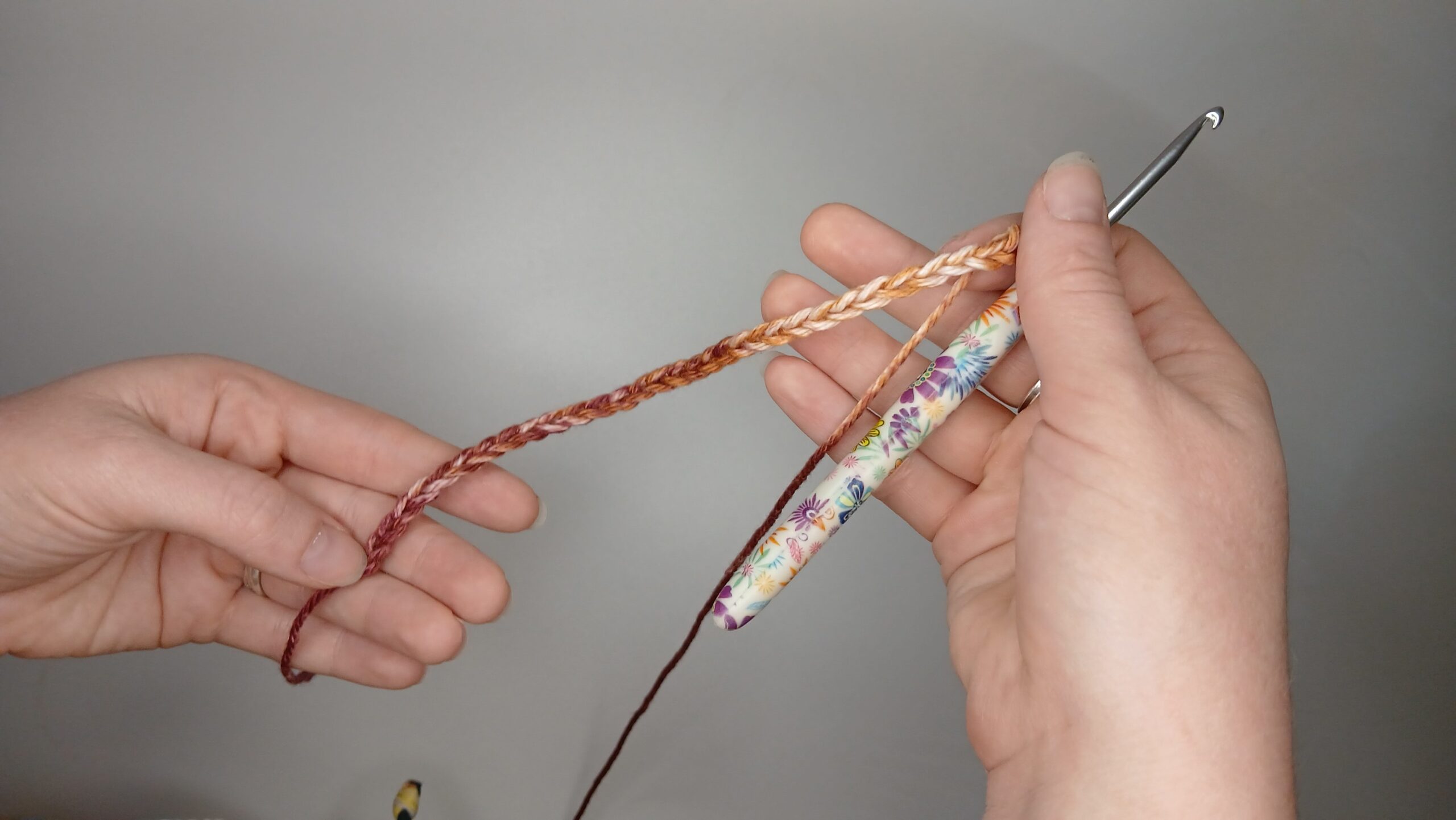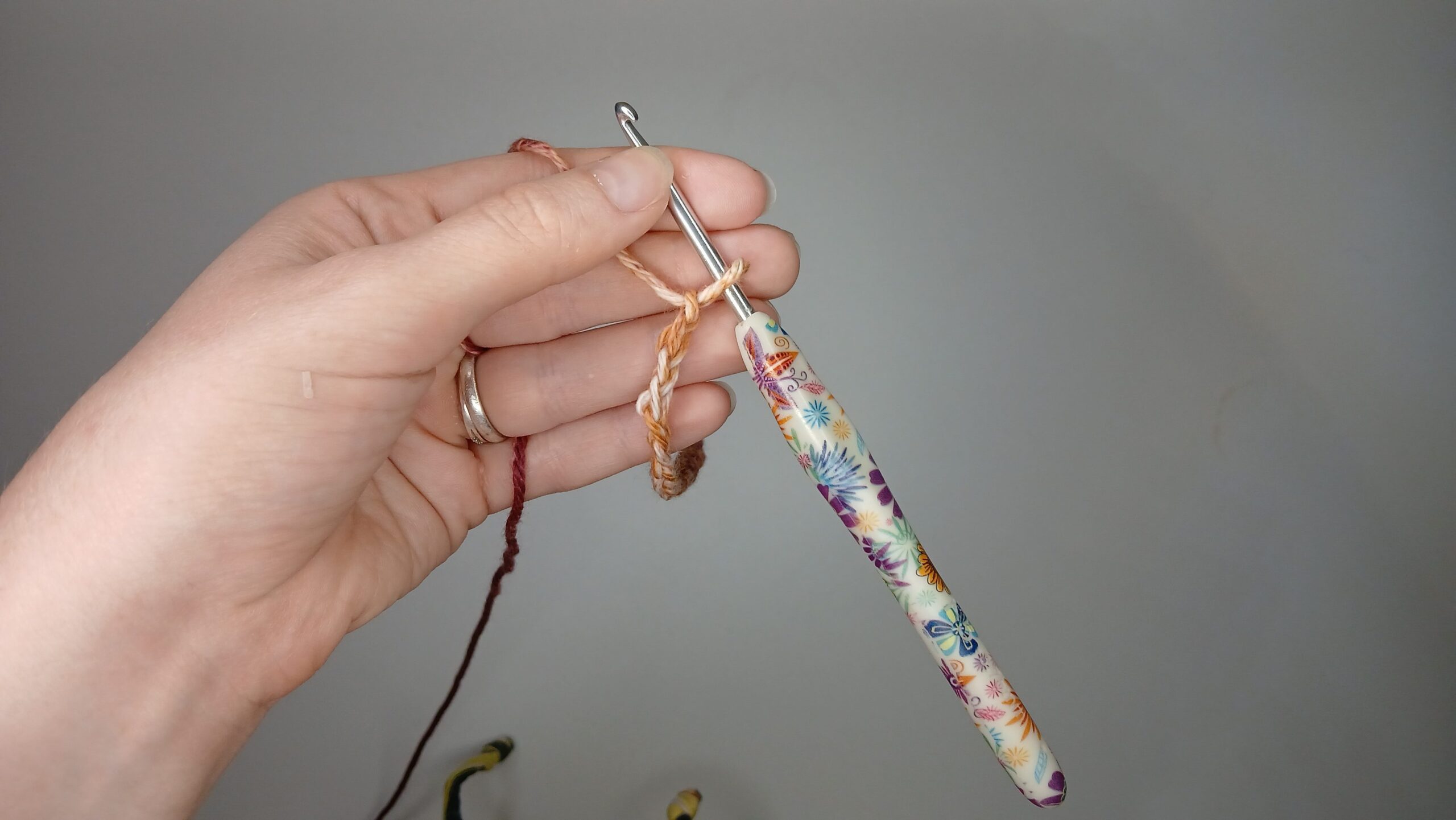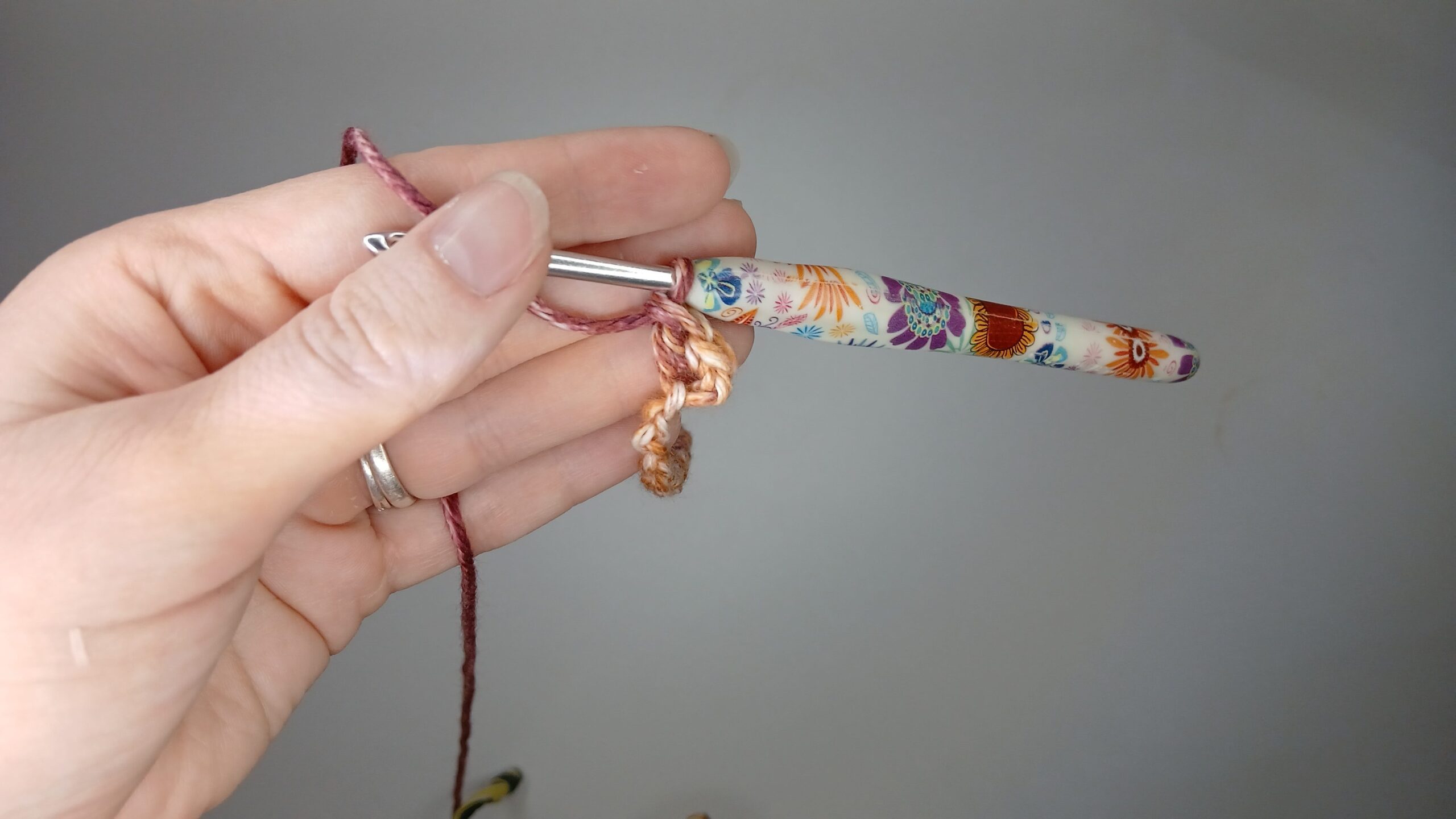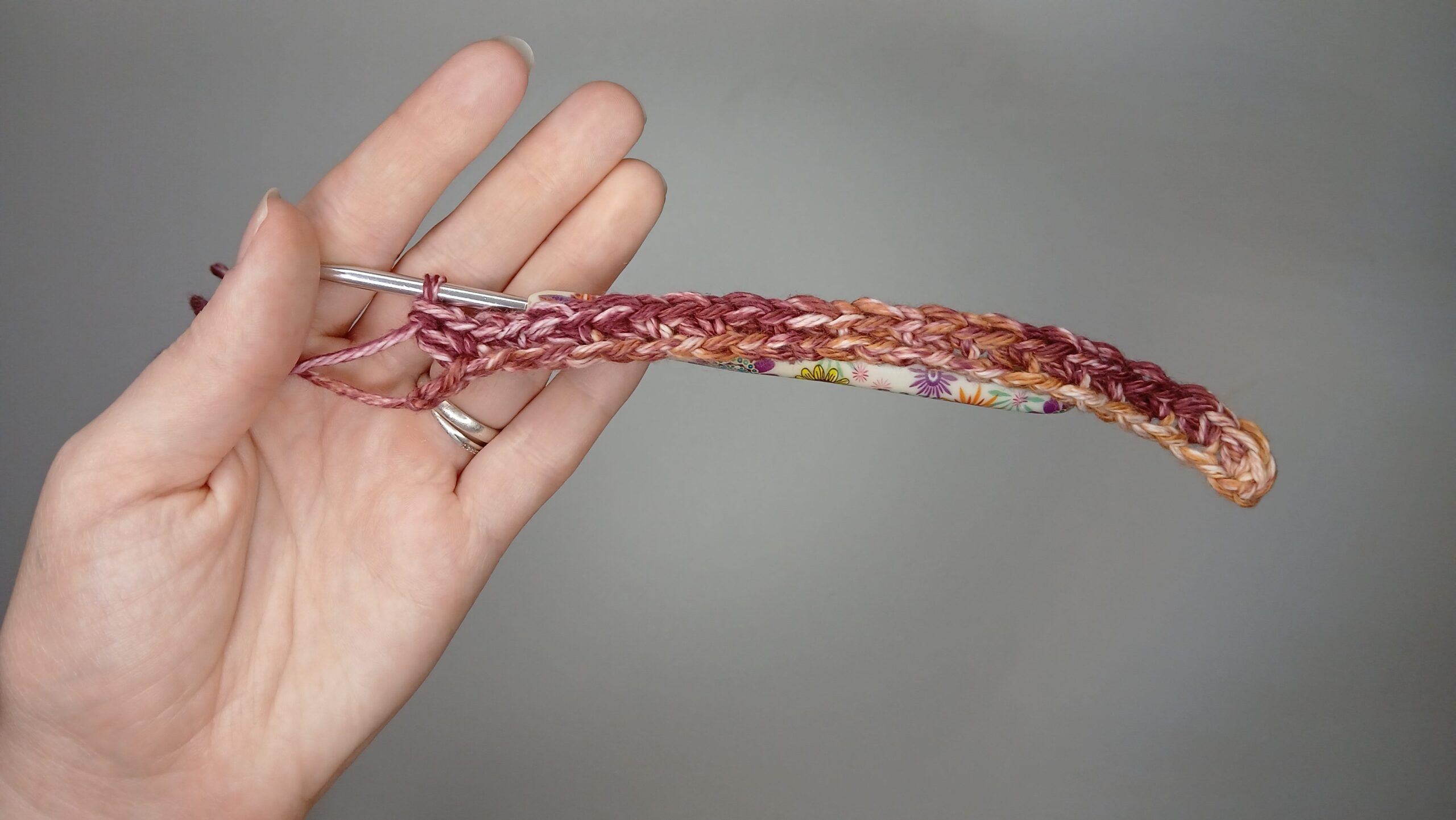 - Weight 4 cotton yarn (I used Hobby Lobby’s ‘I love this cotton’: Cinnamon Cedar )