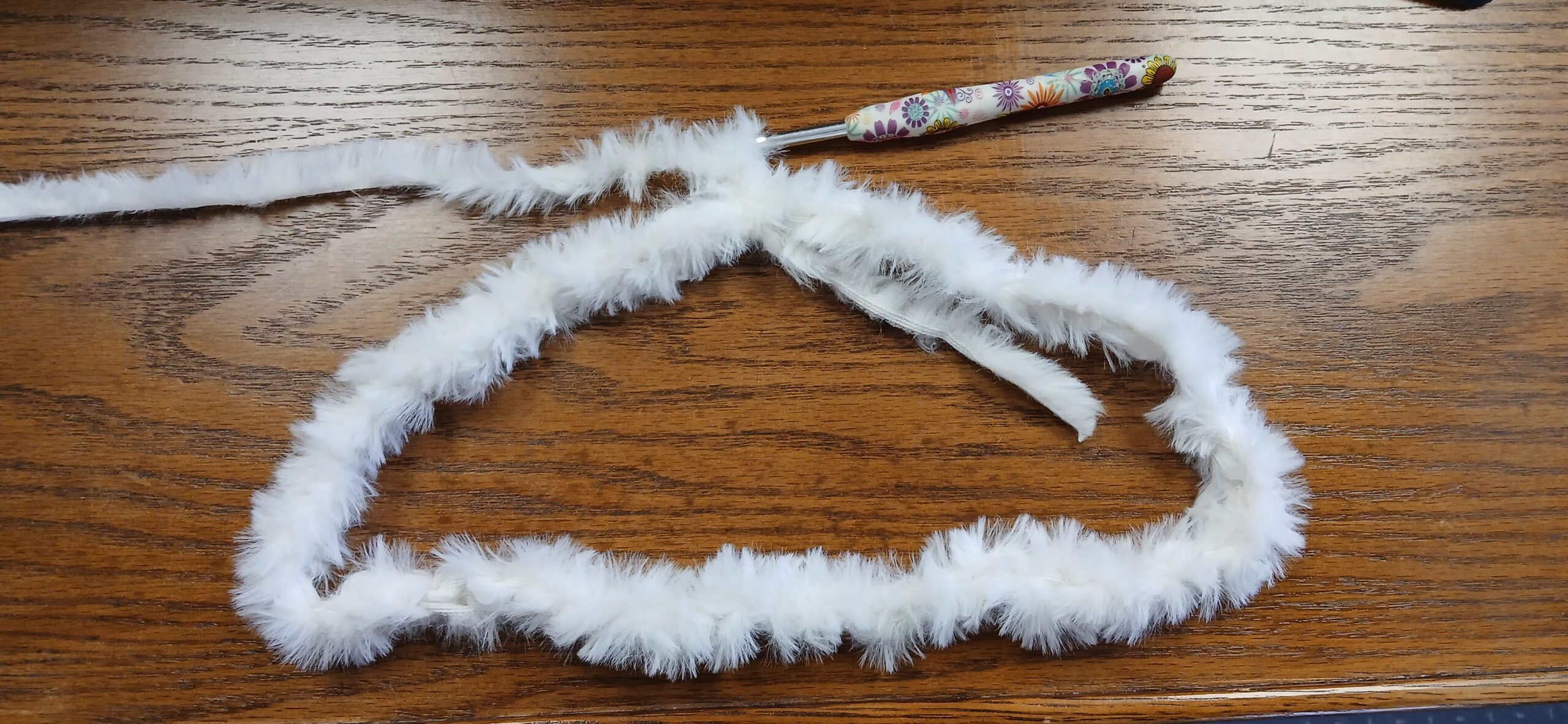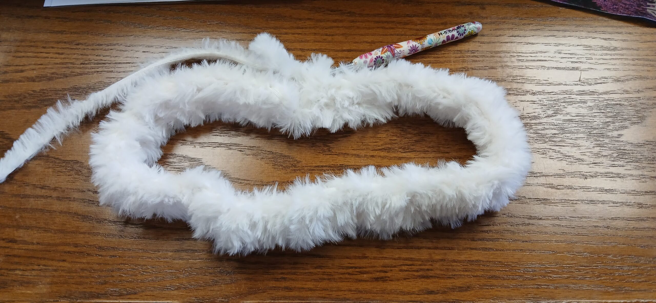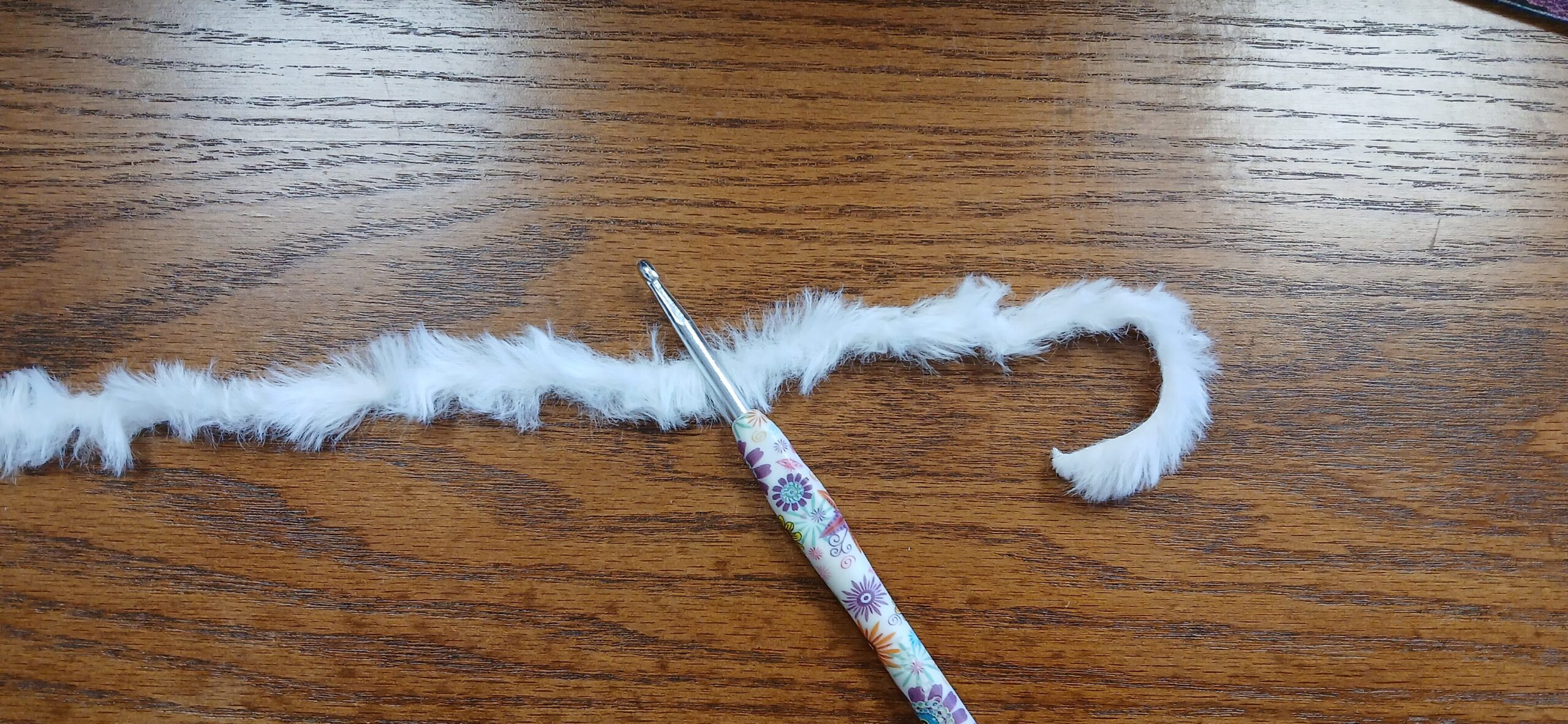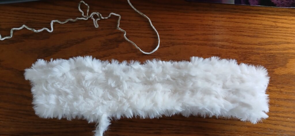 - Weight 6 fuzzy yarn – I used Yarn bee’s: Fur the Moment from Hobby Lobby