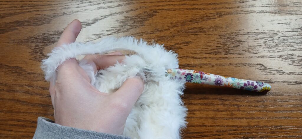 I can not get enough of this hat! It’s the most adorable crochet project I’ve worked on in awhile. I’ve made 3 in 2 days! While working with the fuzzy yarn is a bit complicated in my opinion, the ending result makes it completely worth it!
